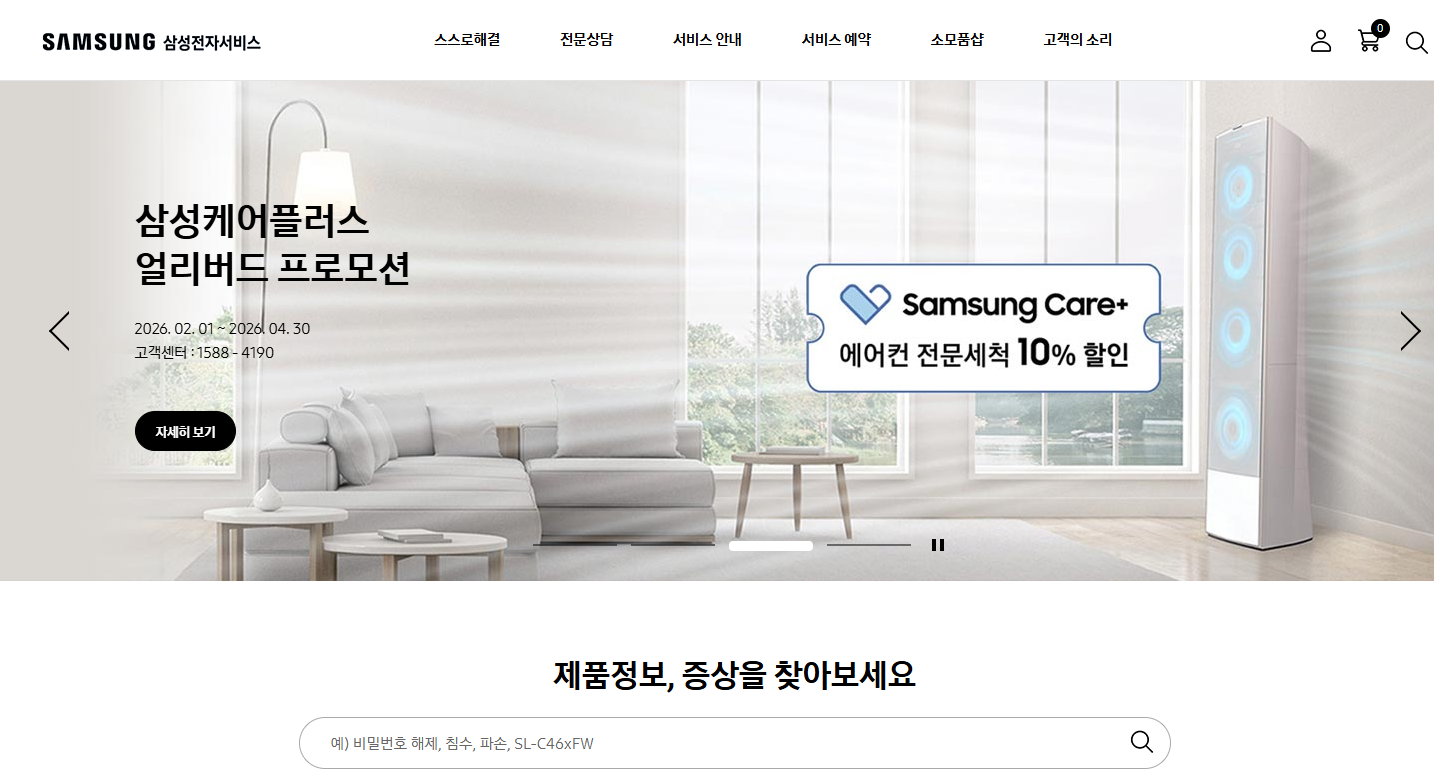- ARS에서 “제품 상담 및 서비스 신청 → A/S 예약 및 접수” 메뉴로 들어가 상담원 연결 후 예약할 수 있습니다.